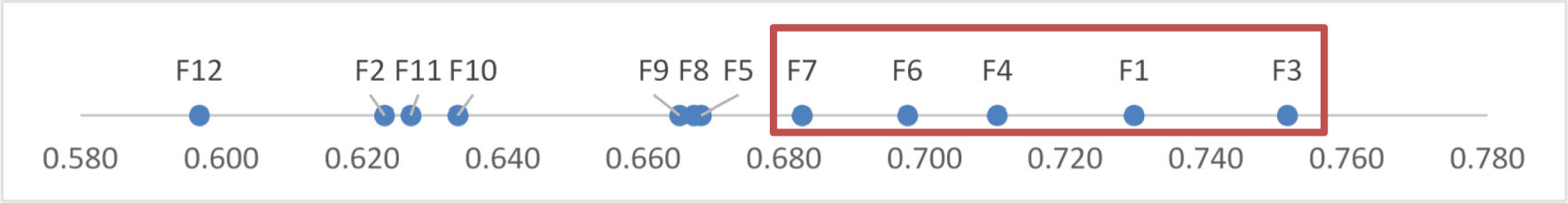 The results of the GRA analysis revealed that the Grey Relational values of the sixth to eighth factors were very close, indicating similar levels of importance among these factors. However, if these three factors were also extracted as key ones, this would result in 8 out of the 12 candidate factors being classified as key factors. Such an outcome would fail to effectively distinguish the criticality of the factors, contradicting Daniel's concept [32], which emphasises maintaining a reasonable number of key factors to ensure their representativeness and decisiveness.