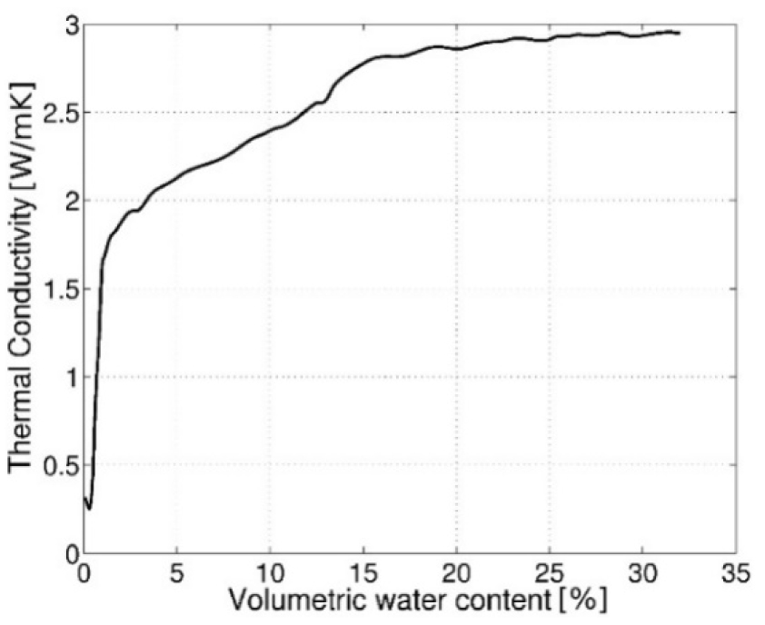 Thermal conductivity in relation to volumetric water content for loosely packed sand [15]