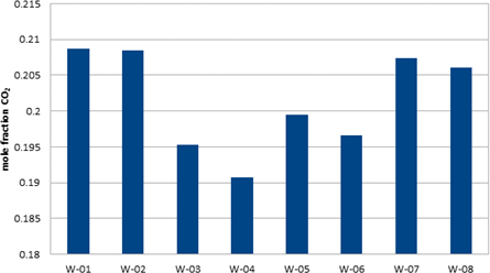 Profiles with CO2 mole fractions ranging from 0 to 0.2 for selected variants