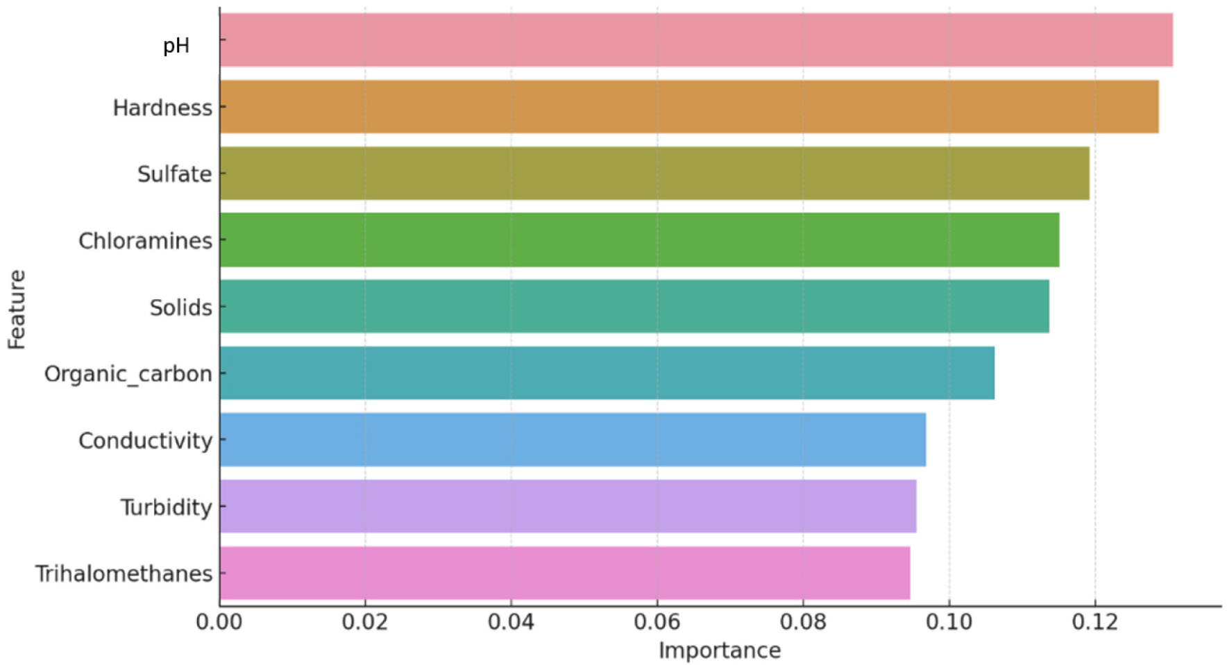 RF Classifier: Random Forest was chosen for its robustness, interpretability, and performance with structured data. As an ensemble of decision trees, it reduces overfitting by averaging out predictions from many trees, which makes it very useful for complex nonlinear interactions in data. Also, its structure includes a feature importance analysis, which is a valuable tool for identifying the main water quality parameters.