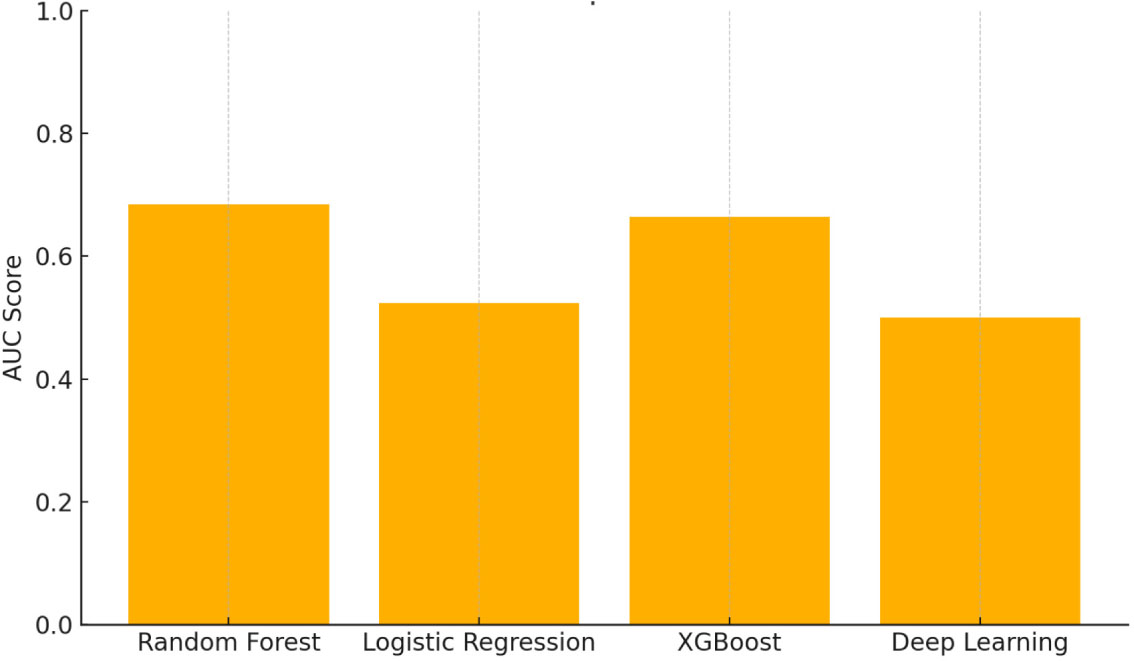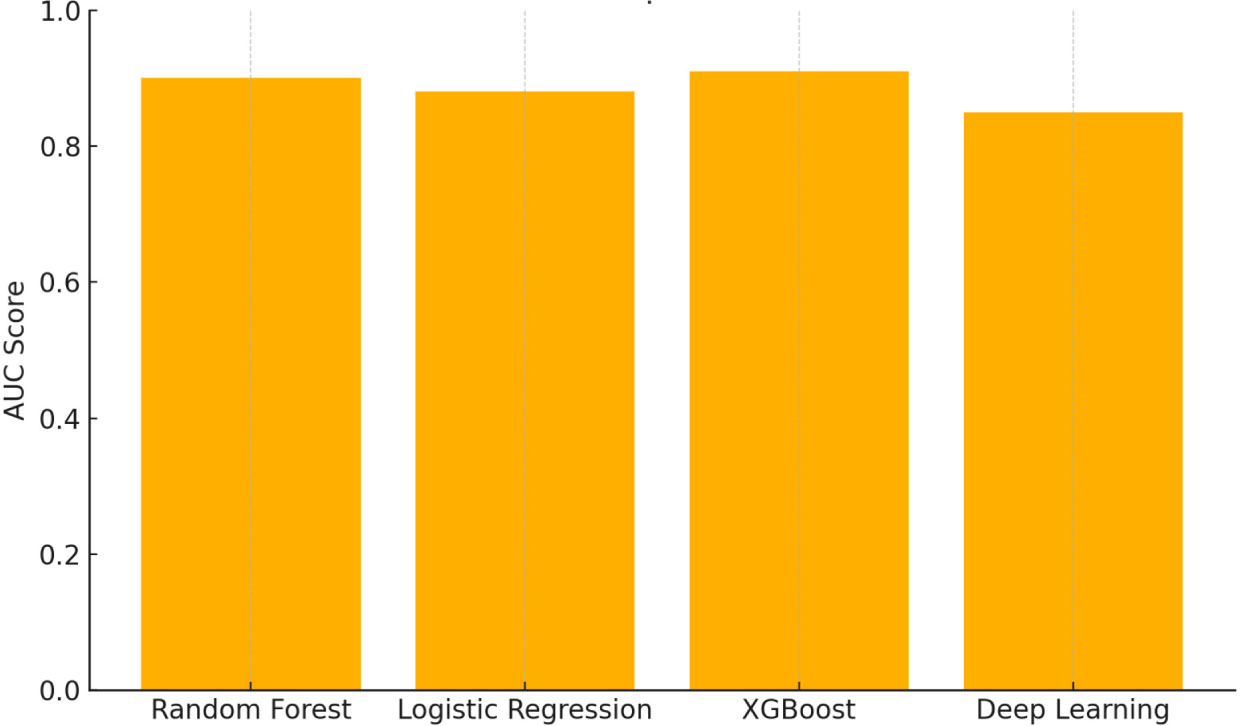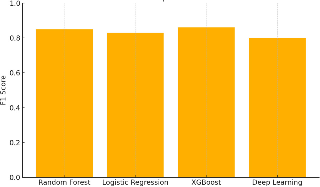 XGBoost has shown the highest F1-score (0.86), followed by Random Forest (0.85). Logistic Regression and Deep Learning performed slightly lower. XGBoost also has the highest AUC (0.91), which confirms its superior ability to distinguish between safe and unsafe water, and Random Forest follows closely with 0.90. Logistic Regression and Deep Learning are slightly behind. Accordingly, the XGBoost model offers the best overall balance between precision and recall. Deep Learning achieved decent performance but did not outperform ensemble methods on this tabular dataset.