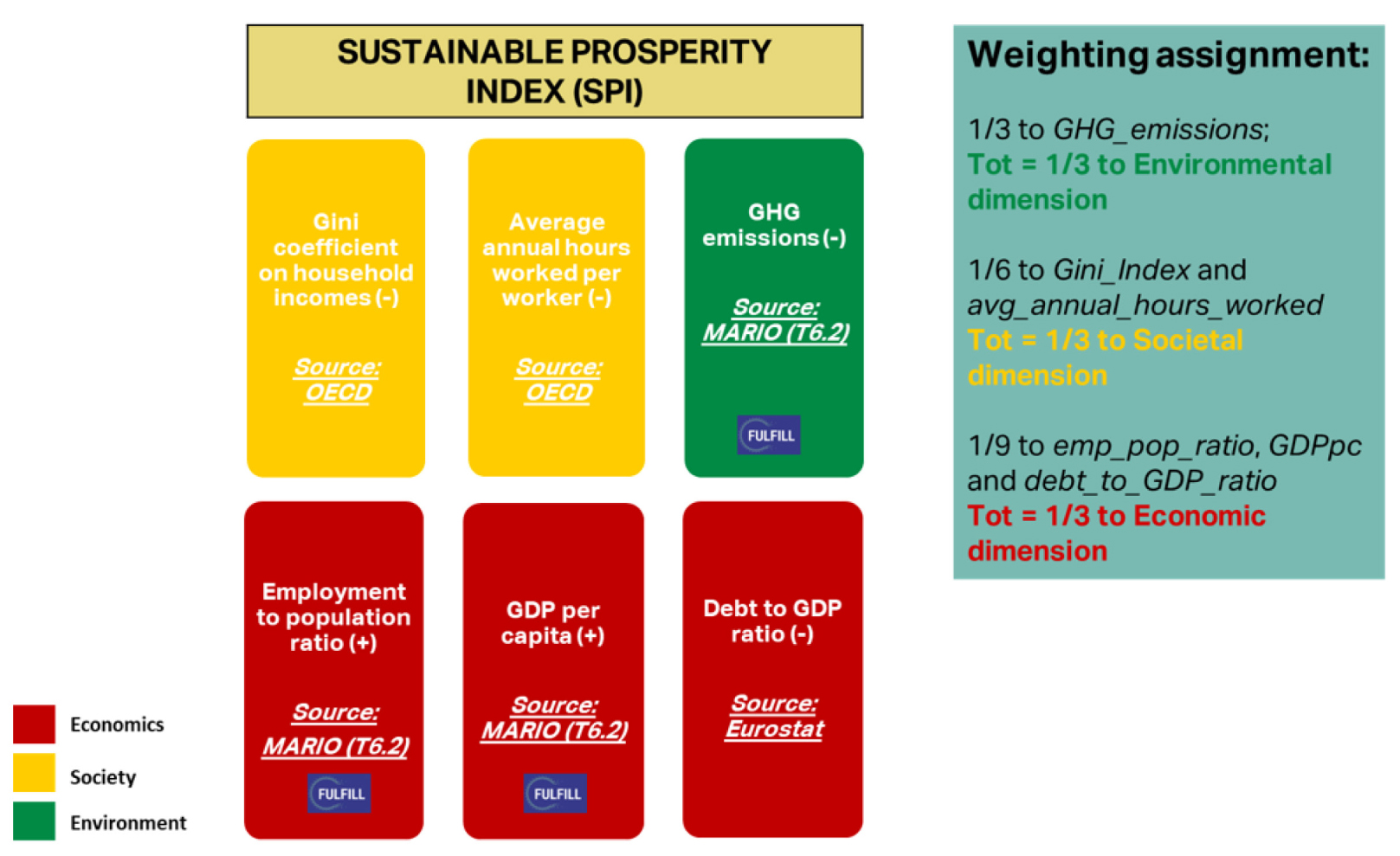 Originally, inspiration was drawn from the Sustainable Prosperity Index (SPI) proposed by Jackson and Victor [22].††† Due to the flexibility related to its construction process and the comprehensive aggregation of relevant economic, social, and environmental dimensions, the SPI was employed as the target beyond-GDP index analysed in the present paper.