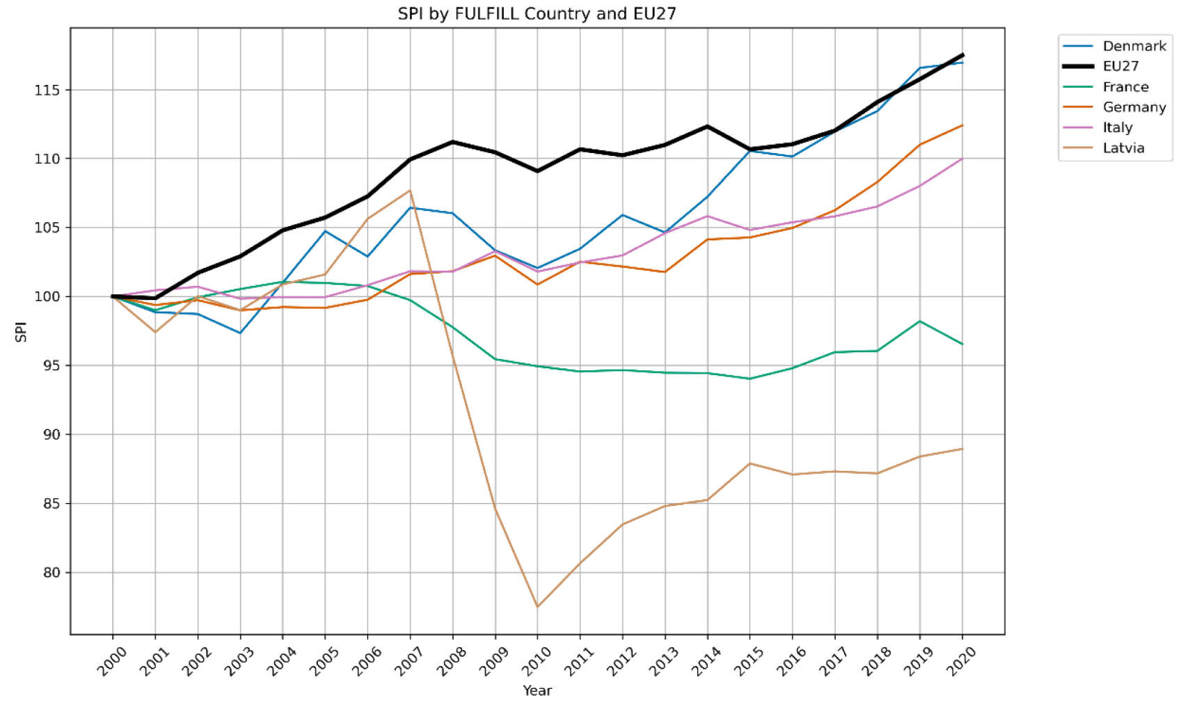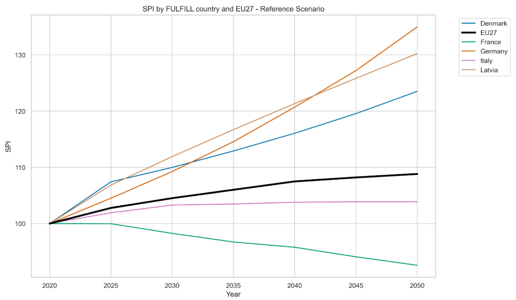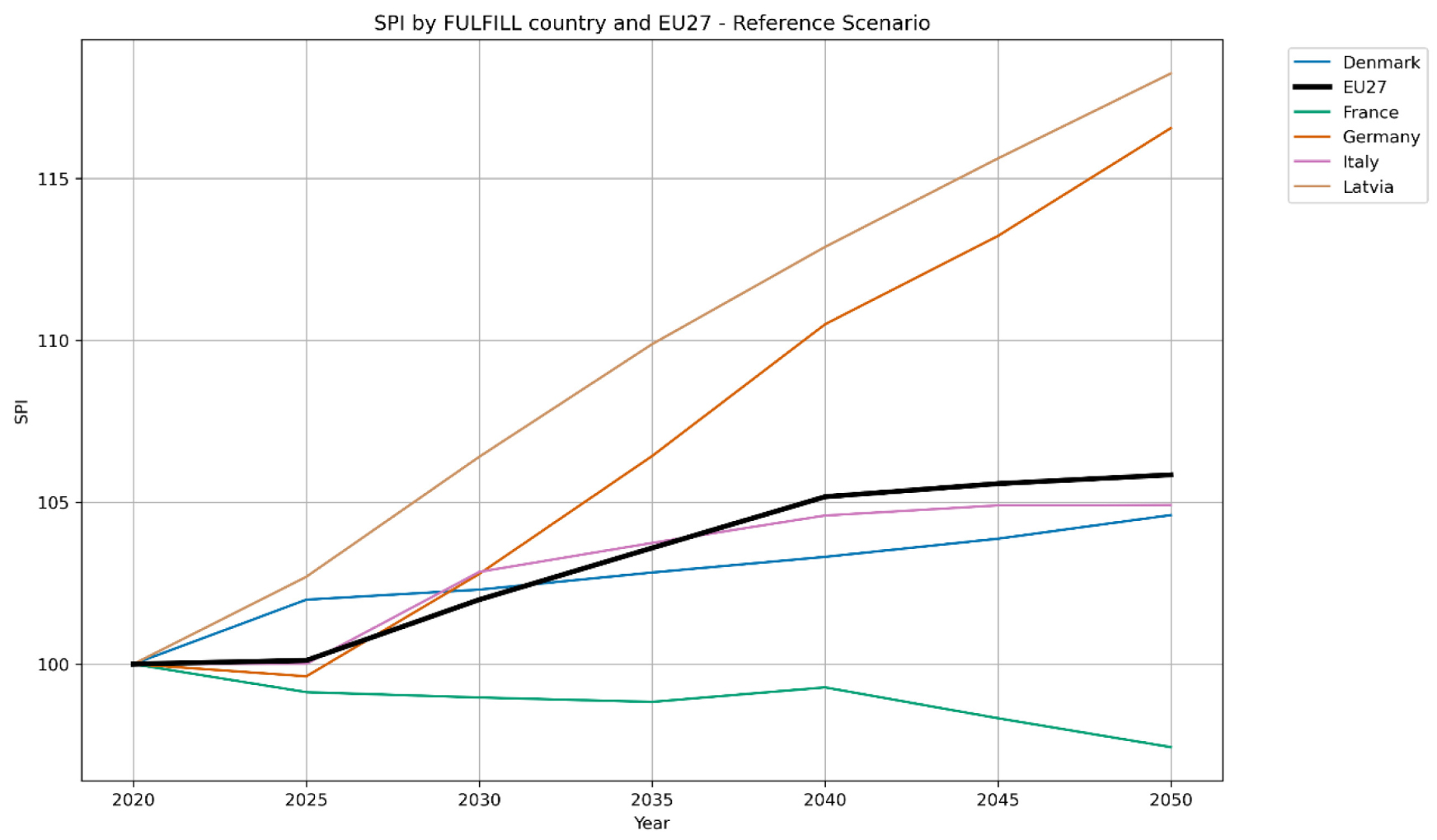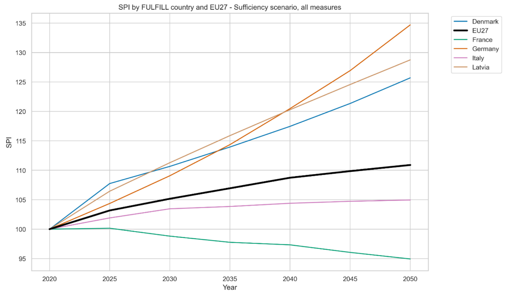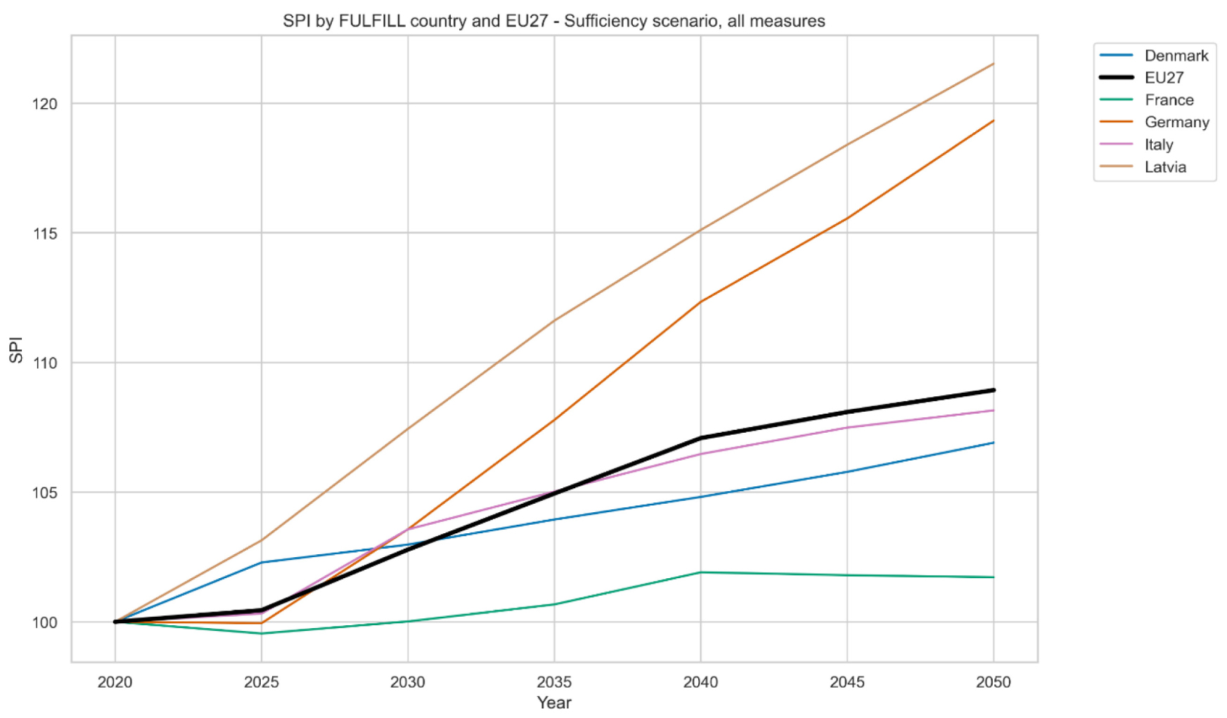 Projected SPI under the Sufficiency Scenario for FULFILL countries and EU27