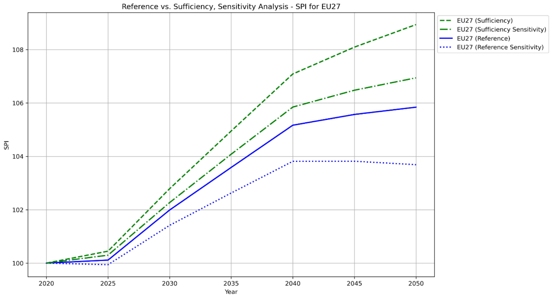 Figure 6 shows the evolution of SPI derived from the Sufficiency Scenario projections for the period from 2020 to 2050.