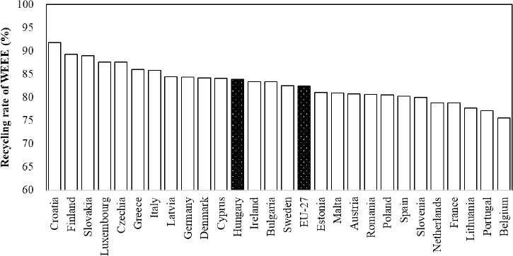 This paper presents a comprehensive analysis of WEEE recycling rates, waste generation trends, and the potential for urban mining in Hungary and the EU. The findings offer valuable insights into the critical intersections of sustainability, resource recovery, and waste management. The analysis emphasises the urgent need to advance waste processing technologies to optimise recovery efficiencies for high-value metals such as copper, gold, silver, and palladium. These advancements could significantly enhance the economic viability of recycling operations while reducing environmental impacts. Furthermore, the observed regional disparities in waste generation across Hungary underline the importance of designing region-specific strategies that address unique waste management challenges and resource recovery opportunities.